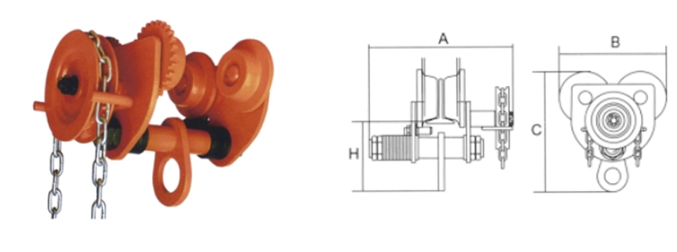 GCL系列單軌小車用途:廣泛地適用于工廠、礦山、碼頭、倉庫、建筑工地等,單軌小車用于安裝機器設備,吊運貨物的場合,單軌小車尤其適用于無電源地點的作業(yè)。