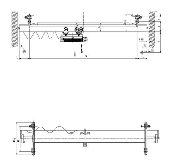 (5)配有水平導(dǎo)輪的端梁能夠防止重物偏移,避免對(duì)起重機(jī)軌道產(chǎn)生側(cè)向力(6)限位開(kāi)關(guān)或松繩繼電器可保護(hù)電動(dòng)葫蘆和重物免受損害(門旁路控制系統(tǒng)可防止在小車行走軌道沿線出現(xiàn)障礙物時(shí)發(fā)生碰撞