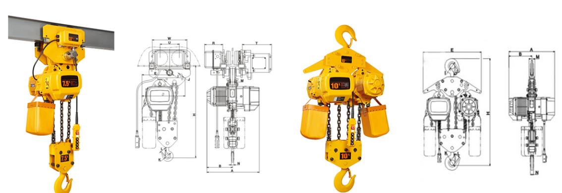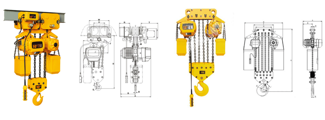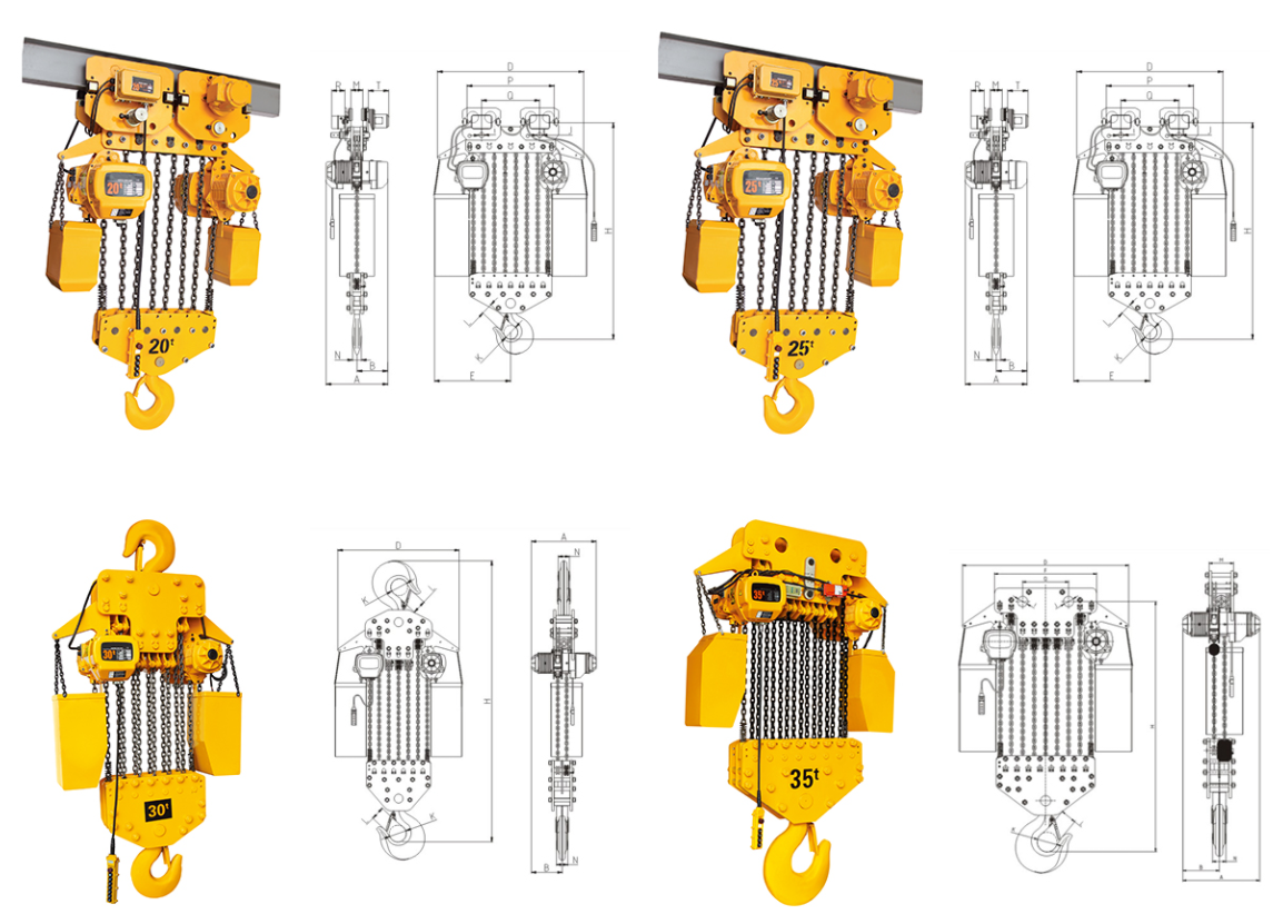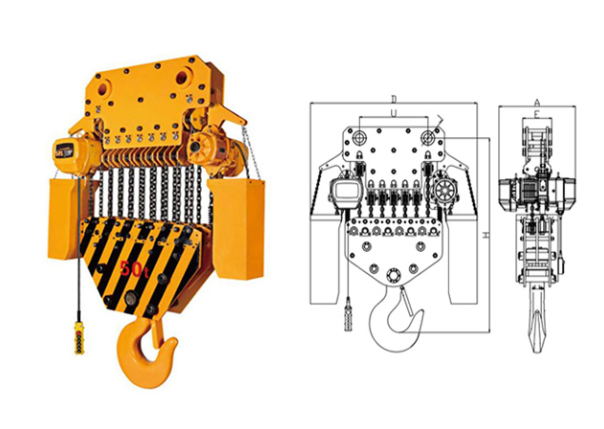 | 掛板式環(huán)鏈電動葫蘆(7.5T-50T) 尺寸參考: | ||||||||